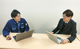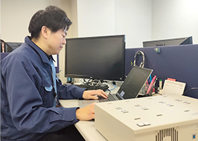 まず、顧客との仕様打ち合わせを行います。顧客のニーズをしっかりと把握したうえで、他部署と協力し顧客に対して技術的なサポートや提案を行い、フィードバックを開発に活かします。