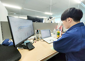業務の流れとしては、まず元請け企業の担当者と打合せを行い、仕様や改造内容を確認します。その後、その内容をもとに制御設計を進めていきます。一つの案件の期間は早ければ約2週間、規模が大きいものでは一か月以上かかることもあります。案件ごとに内容が異なるため、柔軟な対応力が求められます。